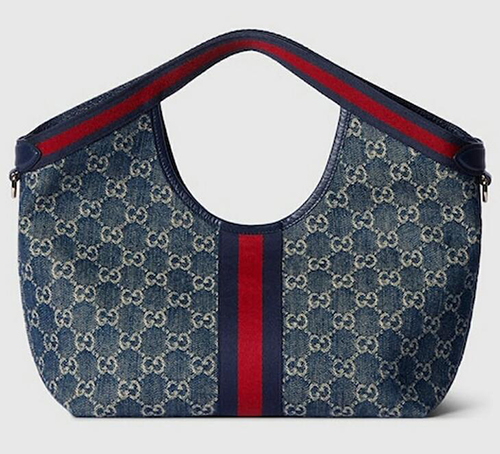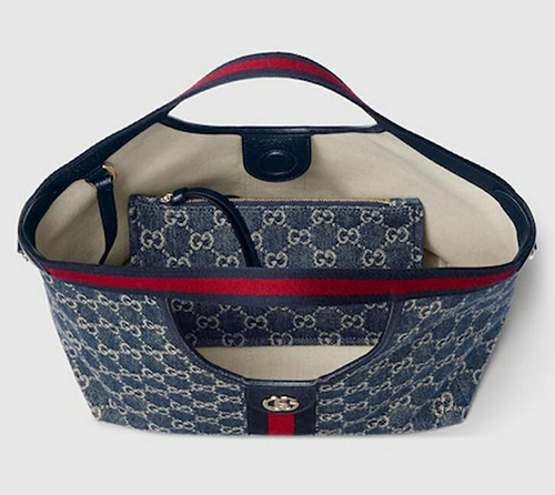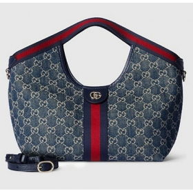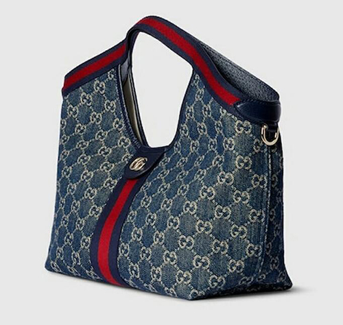 GGデニムで仕立てたこの収納力のあるバッグには、ウェブ ストライプのトリムを施し、