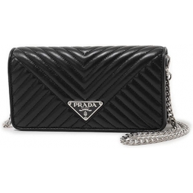 ブランドコピー >> Prada(プラダ) >> Prada バッグ >> プラダ 1DH044 2CET F0002 キルティングレザー ショルダーバッグ チェーンバッグ ポシェット 三角ロゴ金具プレート NERO レディース