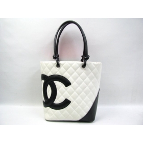シャネル カンボンライン ミディアムトートバッグ A25167 ラムスキン ブラック×ホワイト