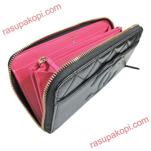 ブランドコピー >> Chanel(シャネル) >> Chanel 長財布 >> シャネル ロング ジップ ウォレット 長財布 ゴートスキン ブラック 黒 ピンク ゴールド金具 AP2025 B05132 94305